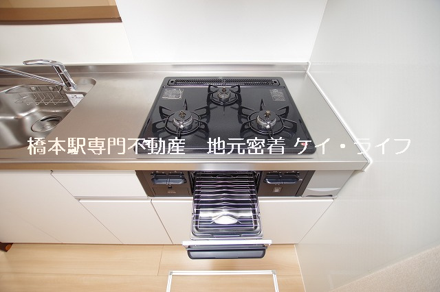 アルソック完備で安心。3口ガスシステムキッチンと1坪バスで快適な新婚生活を始められます。