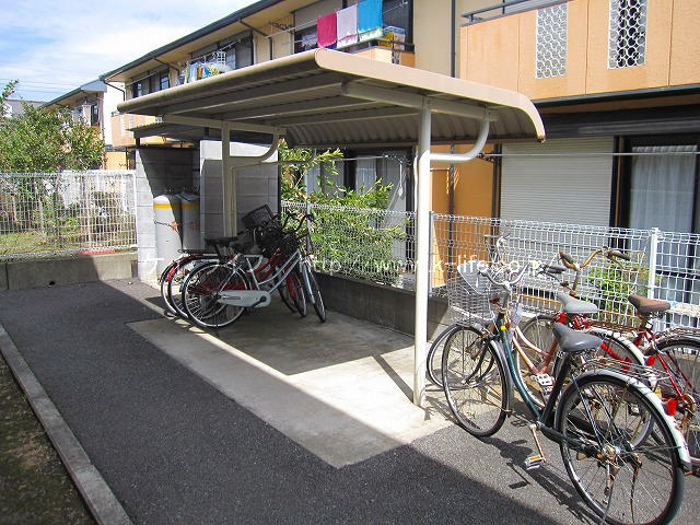 | 設備等 | バス・トイレ別、給湯、シャワー、浴室に窓、室内洗濯機置場、独立洗面台、ガスキッチン、コンロ2口以上、システムキッチン、フローリング、収納、エアコン、バルコニー、シャッター・雨戸、モニター付インターホン、CATV(J:COM対応)、インターネット無料、BS、光ファイバー対応、プロパンガス、1階、角部屋、日当たり良好、閑静な住宅街、駐輪場、駐車場 |
