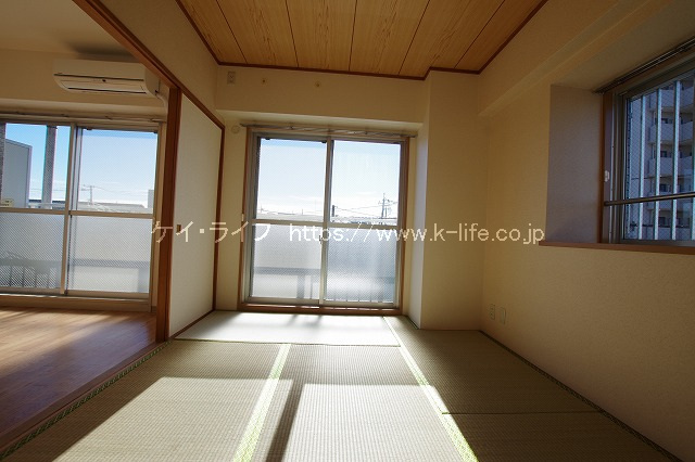 お部屋は、DK9.5帖+和室6帖+洋室4.7帖+サービスルーム(納戸)4帖の間取り。 子ども部屋や在宅ワーク部屋、収納スペースなど、用途に応じて使い分けできるのが魅力です。DKと和室は南向きバルコニーに面しており、日当たり良好。 洋室やサービスルームも独立性があり、家族のプライバシーにも配慮された設計です。