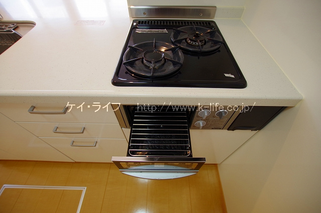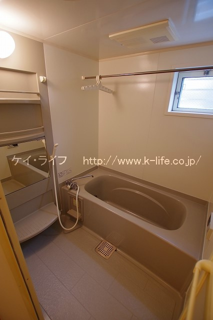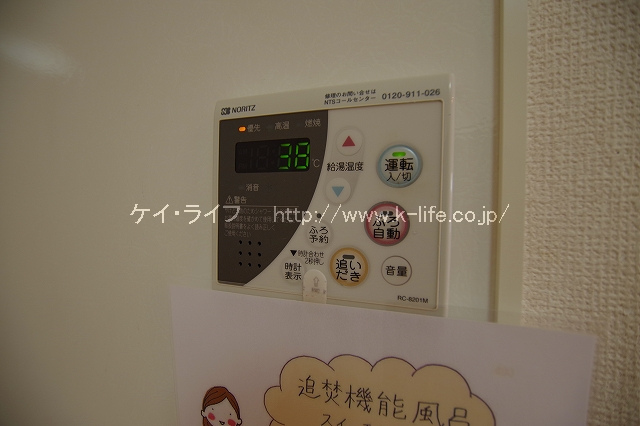 | 設備等 | バス・トイレ別、給湯、シャワー、追焚バス、浴室に窓、浴室乾燥機、室内洗濯機置場、独立洗面台、シャンプードレッサー、ガスキッチン、コンロ2口以上、システムキッチン、カウンターキッチン、エアコン、室内物干し、収納、ウォークインクローゼット、バルコニー、シャッター・雨戸、モニター付インターホン、CATV(J:COM対応)、In My Room、インターネット無料、ネット100M無料、Wi-Fi 無料、BS、プロパンガス、角部屋、閑静な住宅街、駐輪場、駐車場、2人入居可 |