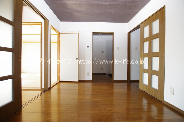 鉄筋コンクリート造6階建てのライフプラザカナンは宮上児童館入口の交差点にございます。バス通りのため交通量があり車の音の確認が必要ですね。バス通りは銀杏並木で秋になるとたくさんの黄色がず~っと並んできれいです。南向きのバルコニーは見晴らしが良く、日当たり良好で洋室、和室は特に暖かいですよ。廊下に独立洗面台があるので、歯磨きしている人がいるときは「ちょっとゴメンよ。」と言って後ろを通りましょうね。ペット(小型犬・猫)と暮らす場合、敷金が2ヶ月になります。