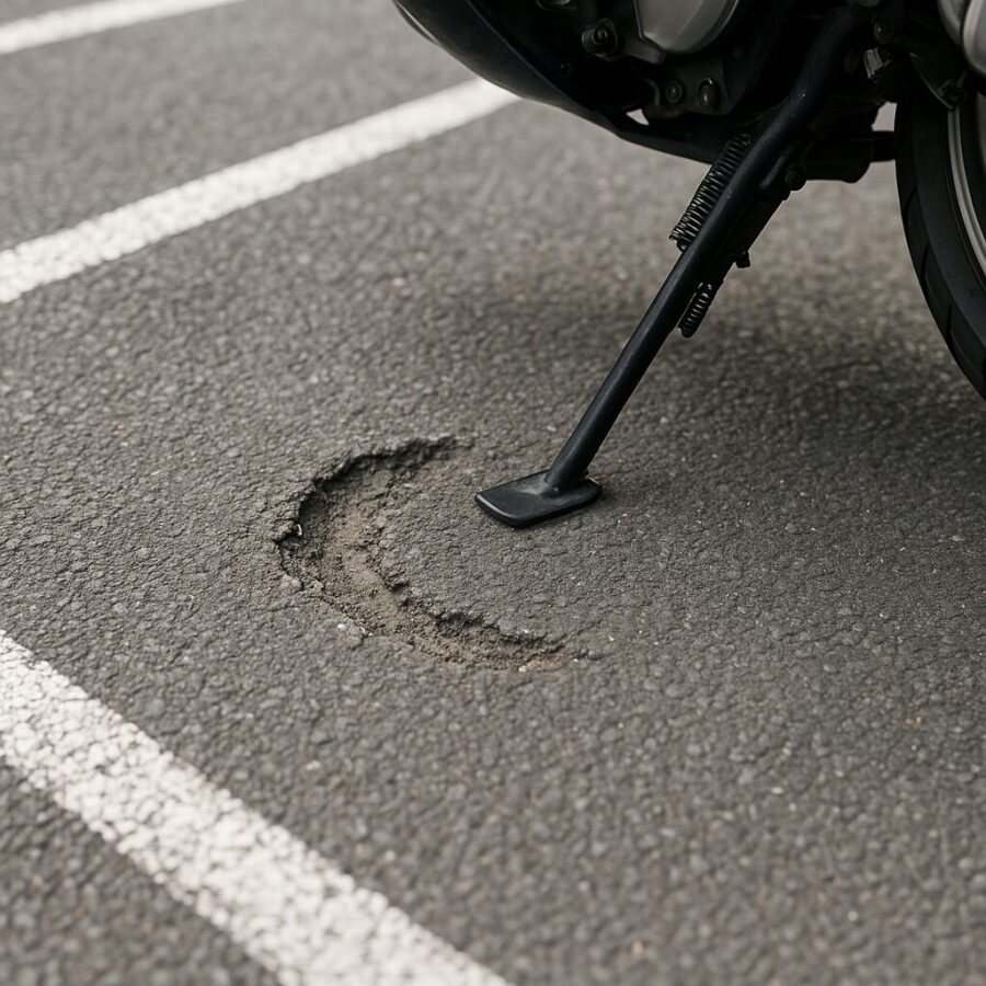 バイクスタンドで駐輪場のアスファルトを傷つけてしまう可能性があります。