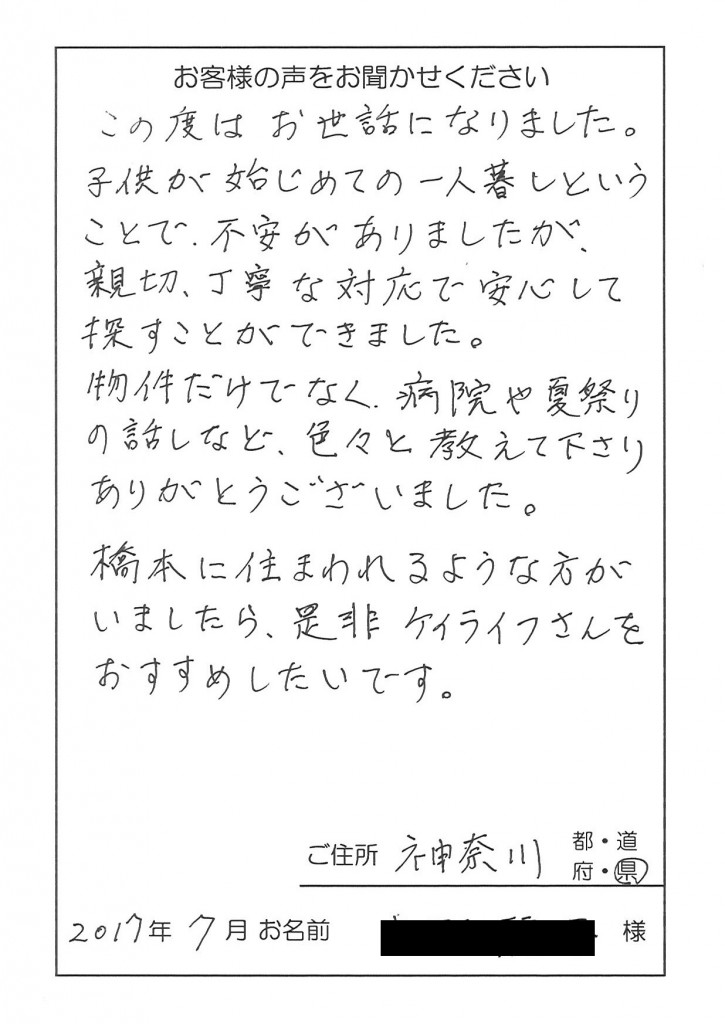 お客様の声をいただきました。