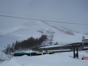 風が強くて頂上へのリフトは動いていませんでしたが、