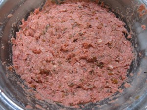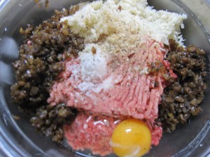 先ほどの炒めた玉ねぎと挽肉(豚・牛)とパン粉、卵などを