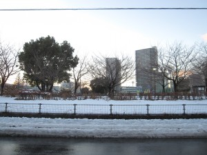 車がよく通る大きな通りは雪が溶けて無くなりました。