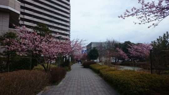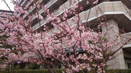 橋本公園の横を車で通ったのですが、河津桜が満開です。