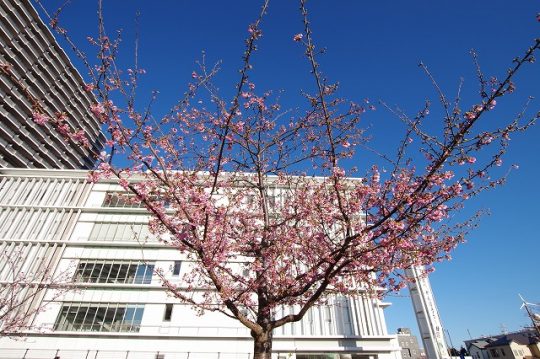 大きく広がる空と桜を見ながら明るい未来を期待しましょう!