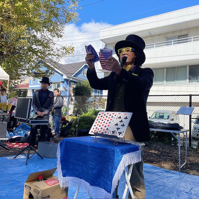 東橋本商店会メンバー、めぐり報さん、東橋本南自治会さん、ステージにご出演いただく橋本マジッククラブさんにも朝早くからお集まりくださり、会場設営をお手伝いしていただきました。