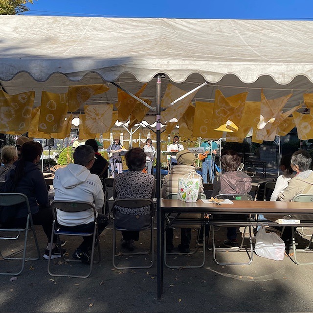 またまた小雨がパラっときたので、急遽テント内で演奏していただきました