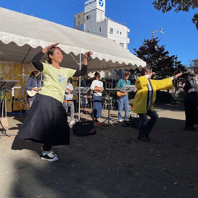 東橋本商店会の古川さんも加わり、フラダンスを披露