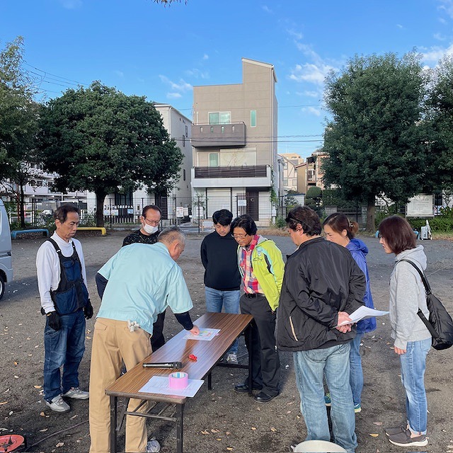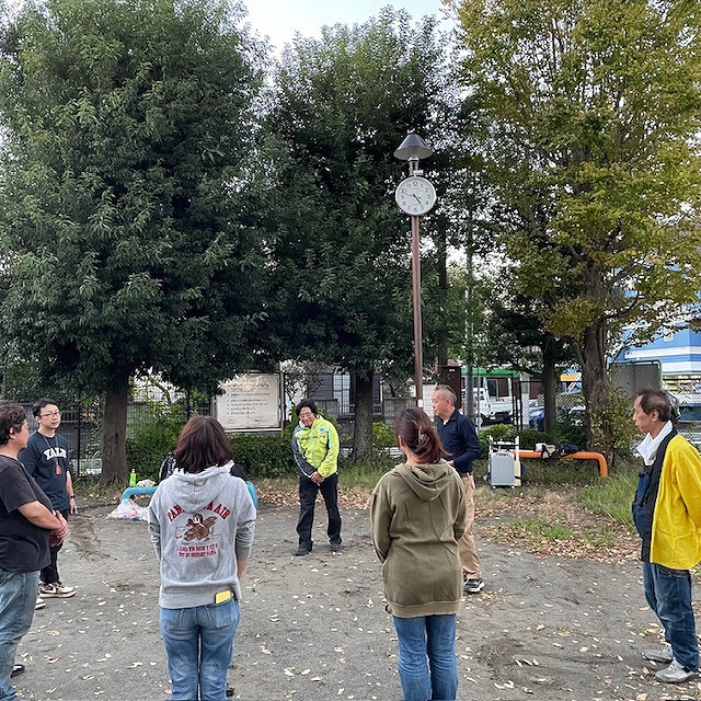 11月3日8時 東橋本公園集合東橋本商店会メンバー、めぐり報さん、東橋本南自治会さん、ステージにご出演いただく橋本マジッククラブさんにも朝早くからお集まりくださり、会場設営をお手伝いしていただきました。