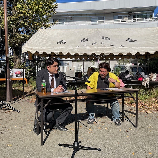 写真左は会場に来てくださった小田貴久 神奈川県議会議員に急遽ご参加いただきました。