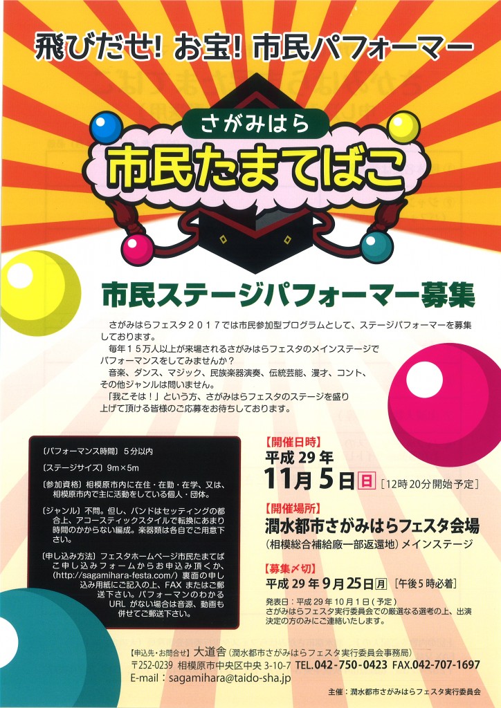 潤水都市さがみはらフェスタ2017 市民パフォーマー大募集!