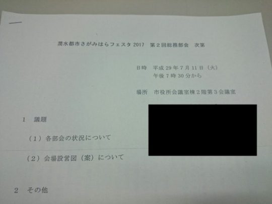 今夜も潤水都市さがみはらフェスタ 2017の第2回 総務部会の会議に出席いたしました。