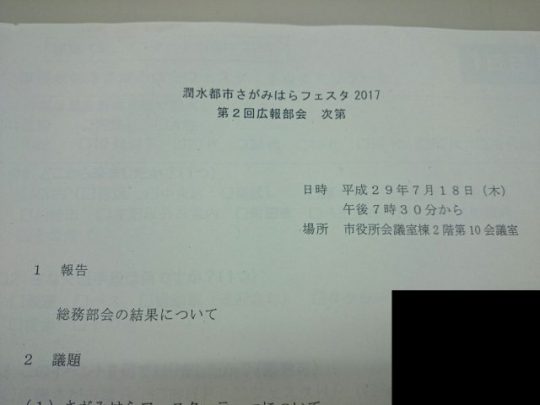 今夜は潤水都市さがみはらフェスタ 2017 広報部会の会議でした。