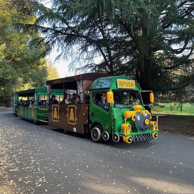 日本庭園を後にして盆栽苑で立派な盆栽たちを楽しんで、砂川口付近でパークトレインに遭遇