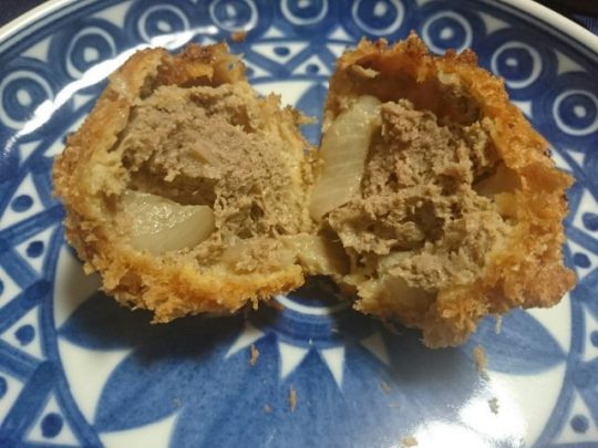 ゴロっと大きな玉ねぎが入ったメンチカツ