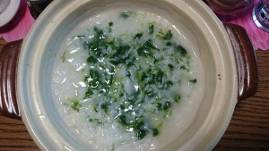 朝食は七草がゆ。