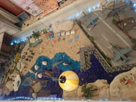 上の写真は沖縄の海をイメージしたカウンターテーブル。