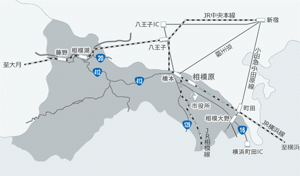 横浜町田ICから国道16号線八王子方面へ約18km