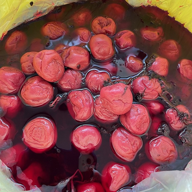 1ヶ月以上、赤紫蘇に漬かった梅。