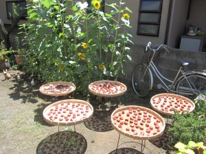 梅を干す時は両面を干すので、干している間、何回か梅を引っくり返します。