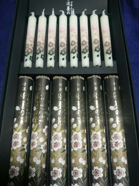 絵入りのろうそくと、とても良い香りのするお線香です。