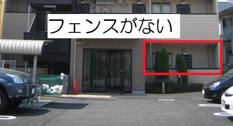 エントランス部分はオートロックなのですが、1階部分にフェンスがないため、簡単に飛び越えて建物内に侵入できます。