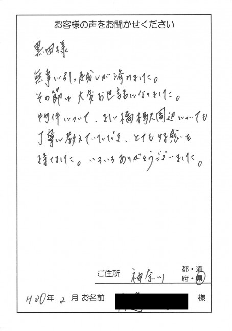 今回のお引越しの理由は小学校でした。昨年11月、今年の1月~3月までにお引越しをご希望ということで、メールでお問い合わせをいただきました。ご希望の条件とご主人様の通勤を考えると分譲賃貸マンションがピッタリだと思っておりました。ザ・ハシモトタワーをご希望されていらっしゃいましたが、空き物件は出ず、その他の分譲賃貸マンションもなかなかご希望に沿える物件ではありませんでした。私は別件で親しくお付き合いさせていただいている不動産会社へ行ったときのこと、「黒田さん、この物件空いたからお客様のご紹介頼むよ。」と手渡しで物件資料をいただき、すぐにメールでその物件をご紹介させていただきました。そして、W様はご都合をあわせていただき、すぐにご内覧くださいました。その後、ご主人様にご了承も得られ、この度のご契約となりました。ご縁というものは不思議なものだなと改めて感じました。