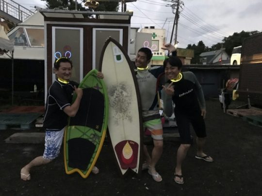 山中湖のハクタカマリンさんで、初めてナイトサーフィンをさせていただきました。