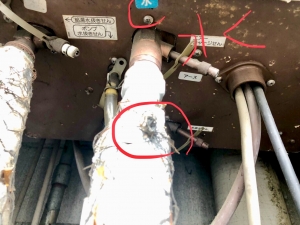 配管に巻かれた網がグルグルっとなって、そこにほこりが溜まって、