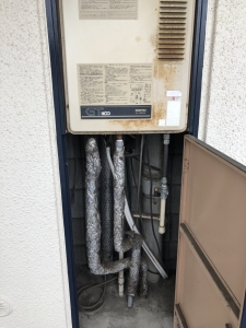 止水栓はパイプスペースになく、1階の通路に水道メーターと止水栓がありました。