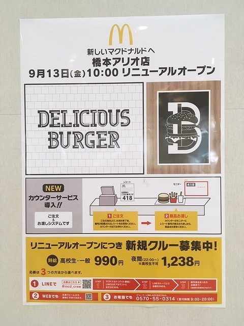 アリオ橋本1階のフードコート内にあるマクドナルドは現在改装しています。