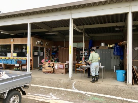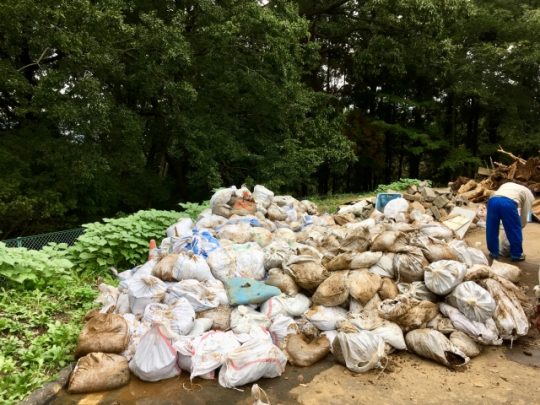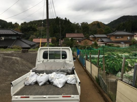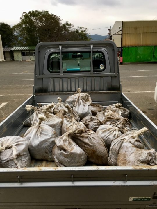 土砂を入れた土のうを軽トラに積んで、津久井クリーンセンターで下ろします。