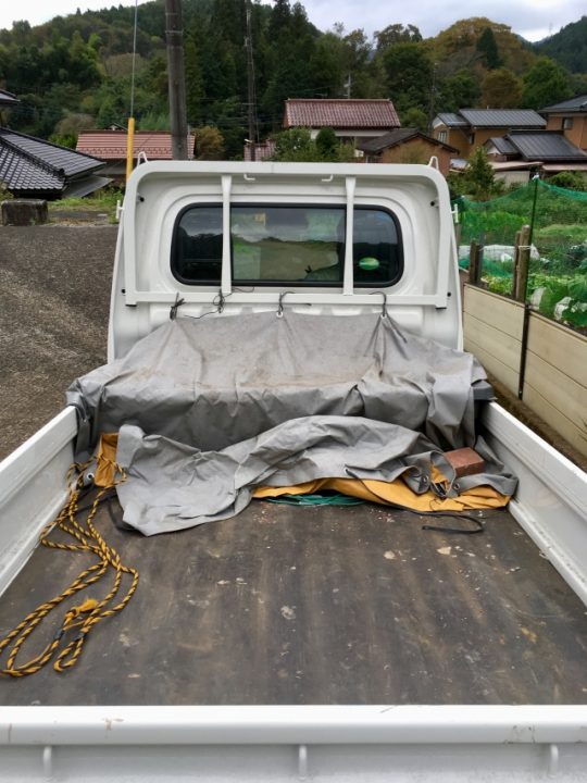 軽トラから土のうを運んで