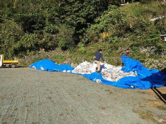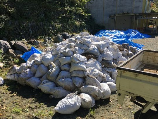 ボランティアさんが大勢いらっしゃったおかげで、作業がどんどん進み、土のうが山盛りになりました。