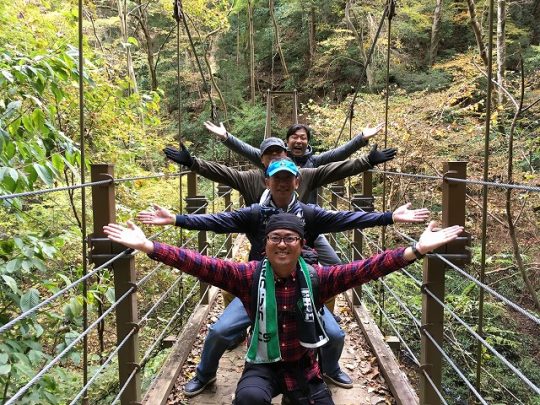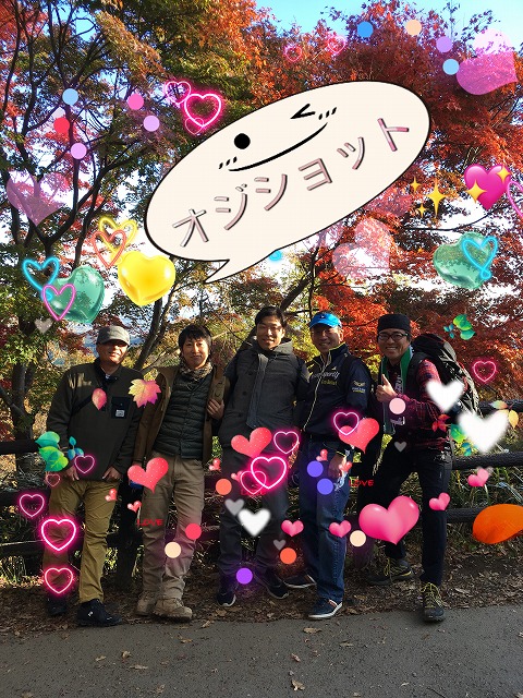 ここで、高校生っぽい女子におじさんたちの集合写真を撮ってもらいました。