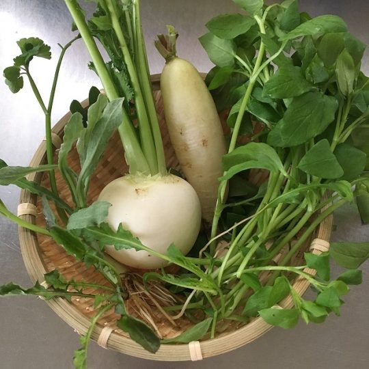 京都市左京区大原から塩漬けもみ紫蘇が届きましたので、樽にもみ紫蘇を投入します。