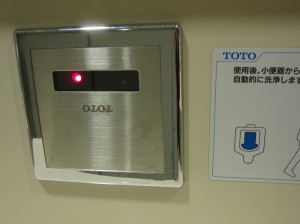 男性が用を済ませ、その場を離れると小便器に水が流れ出すセンター。