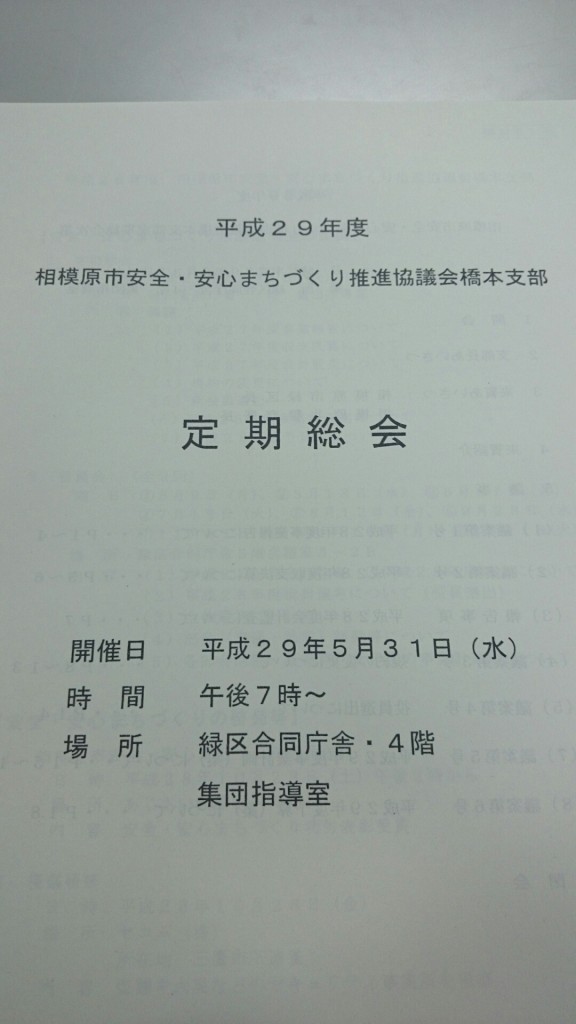 本日は相模原市安全・安心まちづくり推進協議会橋本支部の定期総会に出席いたしました。