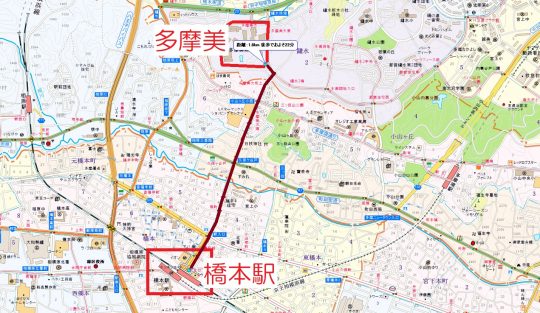 多摩美まで多摩境駅より徒歩1分だけ橋本駅のほうが近くなりますね。
