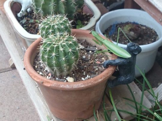 ゴリラ対カマキリの対決です。