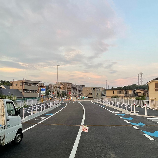 右側の道路はまだ開通前の都市計画道路「宮上横山線」