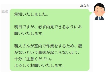 そして翌朝9時、お客様と一緒にお部屋を内見いたしました。