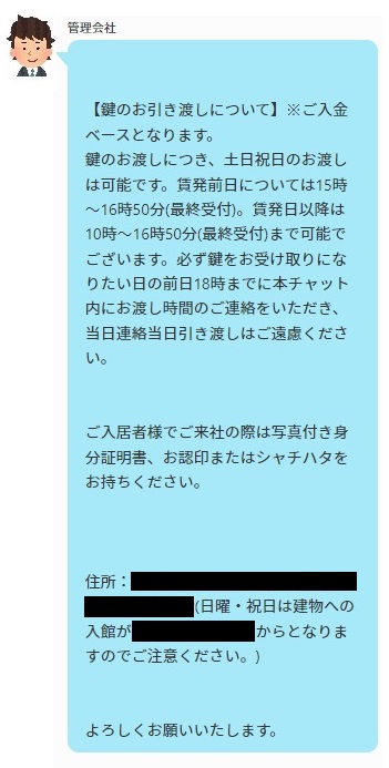しかし、鍵は管理会社のある東京都まで取りに来なければ、渡さない。