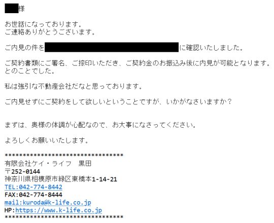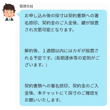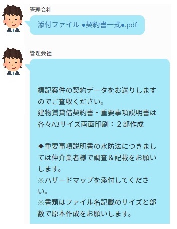 お客様から「物件をお借りしたい」というお返事が来ましたので、ご入居日(賃料発生日)をお決めいただき、後日、管理会社からご契約書類が添付されてきました。