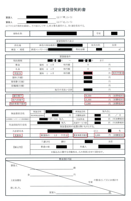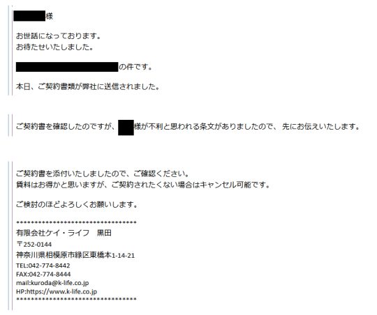 借主様が不利となる契約内容なので、事前にお客様にご説明させていただきました。