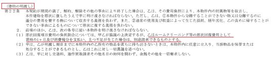(7)本契約において、保証金は契約時に全額償却するものとし、退去時に返還されない事、また原状回復費用・クリーニング費用として充当されない事を乙は承諾し、本契約を締結するものとする。
