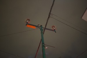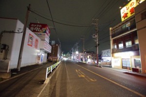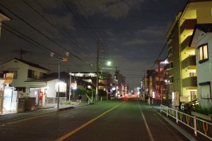 写真では明るく写っていますが、道路の両側にある街路灯が消えているため、普段より暗い道になっております。